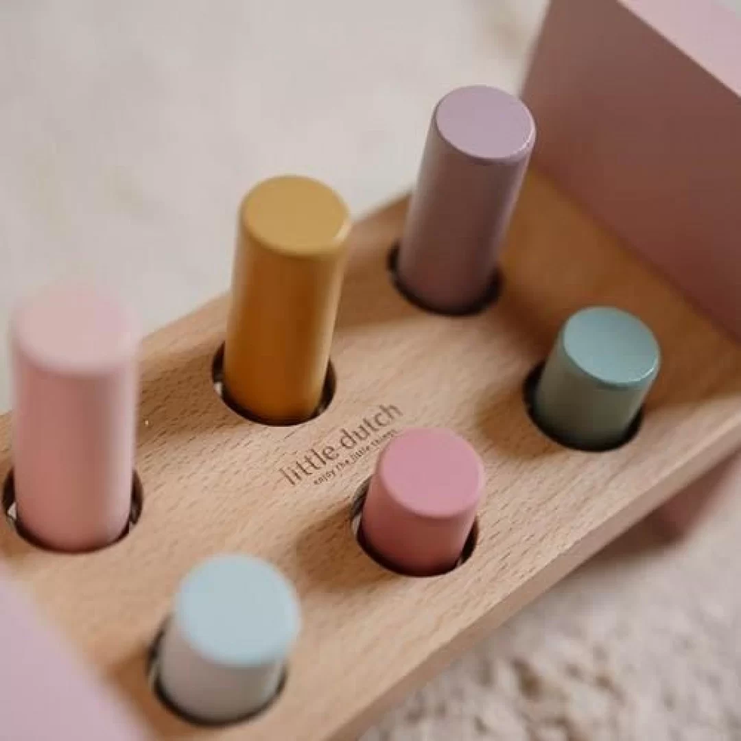 Tap, tap, tap! Upotrebi čekić da zakucaš 6 šarenih klinova u drvenu klupu za udaranje i otkrij magiju Vrta vila. Kada završiš sa udaranjem, okreni klupu i započni iznova! Ova igračka je odlična vežba za razvoj motorike. Ovaj šareni set pruža ne samo zabavu, već i priliku za razvoj fine motorike, koordinacije ruku i očiju, i snalažljivosti. Klinovi su dovoljno veliki da se lako koriste, a drvena klupa je čvrsta i stabilna, savršena za uzbuđenje udaranja.